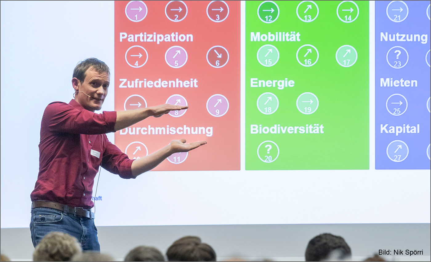 Die Baugenossenschaft mehr als wohnen hat sich in punkto Nachhaltigkeit von Beginn an hohe Ziele gesetzt. Beni Rohrbach sammelt seit zehn Jahren im Auftrag von mehr als wohnen Daten zu beeinflussbaren Faktoren in den Bereichen Ökonomie, Ökologie und Soziales. Alle zwei Jahre werden diese ausgewertet und mit den Vorjahren einerseits und mit den Zielwerten andererseits verglichen. Bei negativen Entwicklungen hat mehr als wohnen nach der Ursache gesucht und entsprechende Massnahmen getroffen. Inzwischen unterbieten speziell bei den Energiezielwerten (Strom, Heizung und Warmwasser) bis auf ein Gebäude alle die Arealzielwerte. (Link zum Monitoring von mehr als wohnen >)