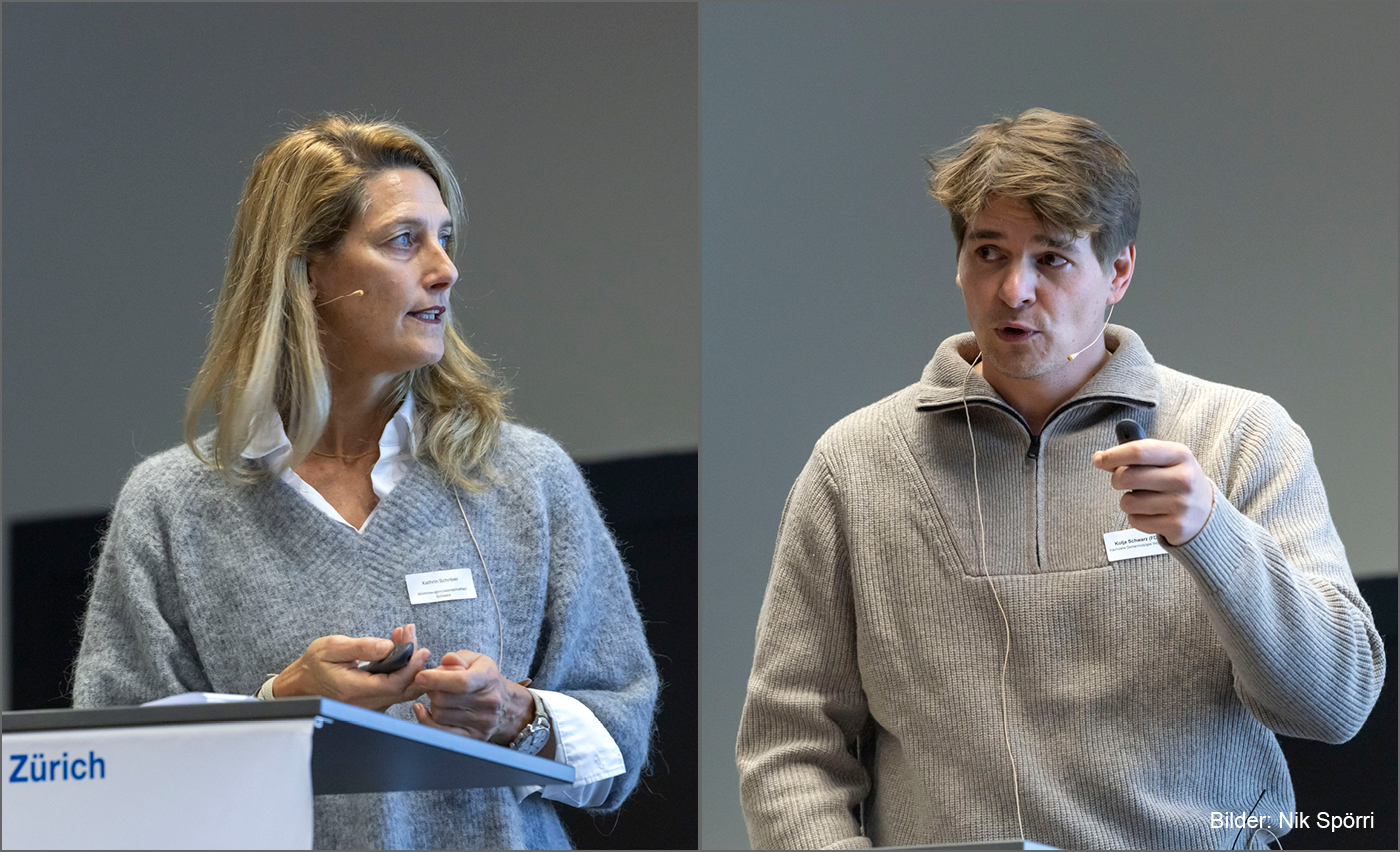 Die Familienheim-Genossenschaft Zürich (FGZ) nutzt die geografische Konzentration – alle Siedlungsetappen befinden sich am Friesenberg – auf ihrem Weg zu Netto-null. Daniela Ziswiler erläuterte, wie die FGZ seit 2014 laufend ihr Anergienetz, das von der Abwärme naheliegender Rechenzentren gespiesen wird, erweitert. Überschüssige Wärme wird während den Sommermonaten in der Erde gespeichert. Die Massnahmen der FGZ orientieren sich an der grösstmöglichen Wirkung, um insgesamt die Zielsetzungen zu erreichen. So wird der relativ grosse Anteil an älteren Liegenschaften prioritär nach den grössten Hebeln Schritt für Schritt saniert oder neu gebaut. Im Zuge dessen werden auch die indirekten Emissionen gesenkt: Die nachhaltige Mobilität ist ein wichtiger Bestandteil des Massnahmenplans. Dieser sieht bei Erneuerungen weniger Autos, weniger Parkplätze und Tiefgaragen vor.